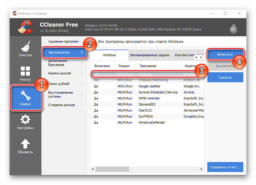 Для начала рассмотрим вариант, когда Вам необходимо просто включить ранее отключенную из автостарта программу.