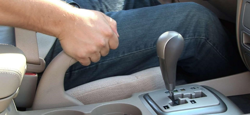 - поставить автомобиль на ручной тормоз (стояночный тормоз включен);