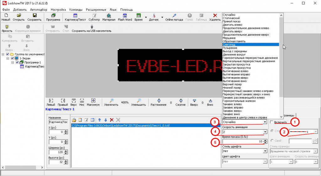 Важно отметить несколько моментов в программировании бегущей строки с помощью программы «LedshowTW»: