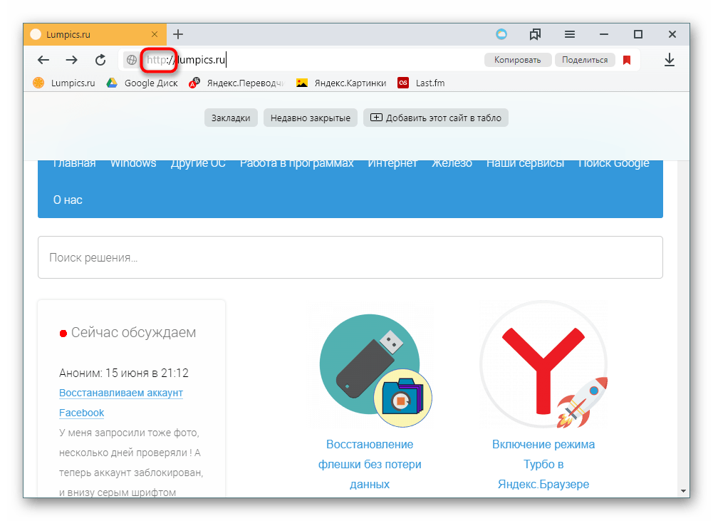 - Проверьте, какой протокол использует сайт. Для этого посмотрите на значок, стоящий левее адреса сайта. Если там нарисован глобус, значит это обычный HTTP, а если замок — значит HTTPS. Вы также можете просто кликнуть по адресной строке, чтобы просмотреть адрес сайта, где всегда указывается протокол в виде «http://» или «https://».