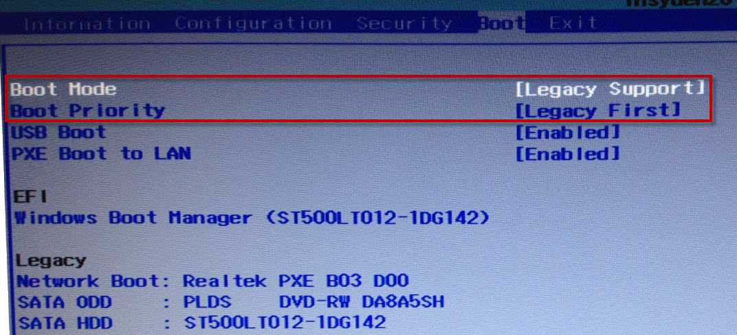 Затем найдите пункт UEFI/Legacy Boot, и выберите режим Legacy Only. Иногда это нужно сделать до смены порядка загрузки, в зависимости от требований системы.