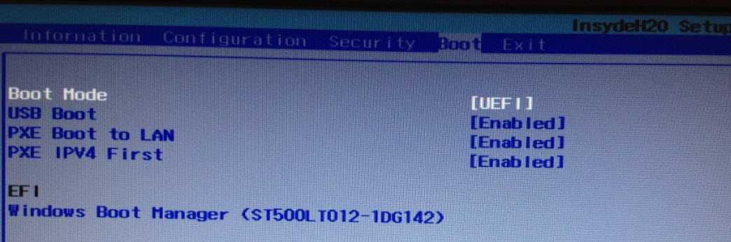 Поскольку основной задачей программного обеспечения БИОС является тестирование ноутбука, то сама программа на мониторе отображается в виде таблицы, разделенной на ряд дополнительных вкладок. Они информируют пользователя о конфигурации ноутбука, показывают основные технические характеристики данной модели, дают возможность выполнить загрузку и настроить систему безопасности. На экране все эти разделы отображены, как «Information», «Configuration», «Boot», «Security», «Exit».