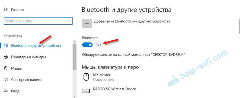 Для подключения нового устройства нужно нажать на кнопку «Добавить устройство». Или смотрите инструкцию, в которой я показывал как подключить наушники по Bluetooth.