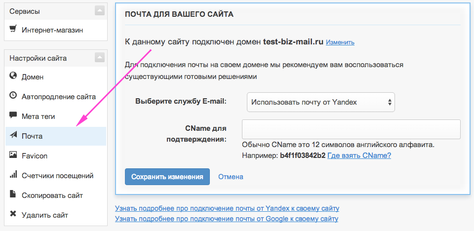 Создание вашего личного почтового домена для сайта происходит в два этапа.