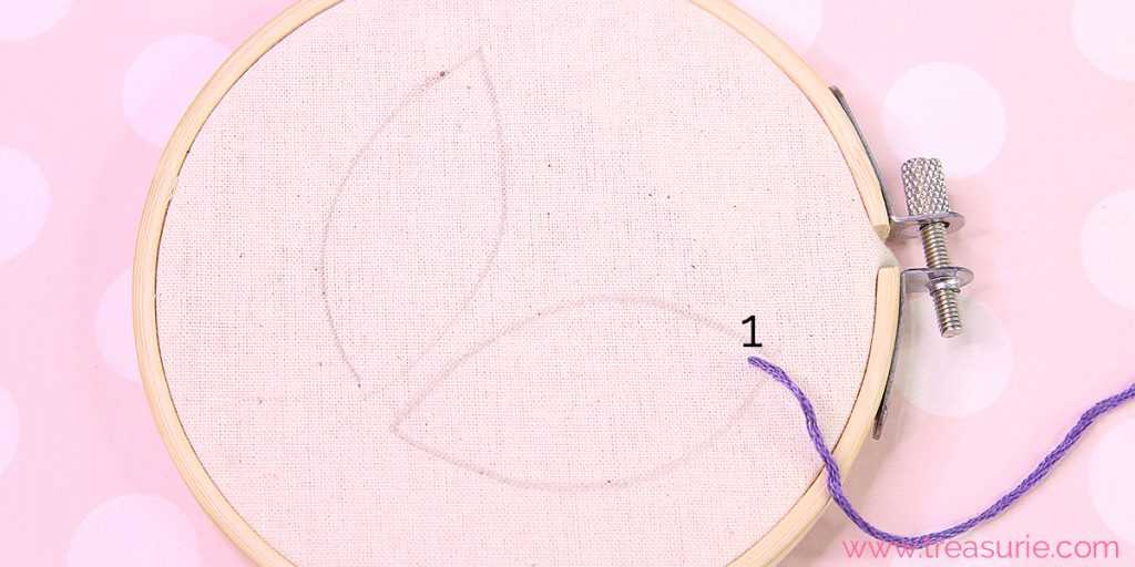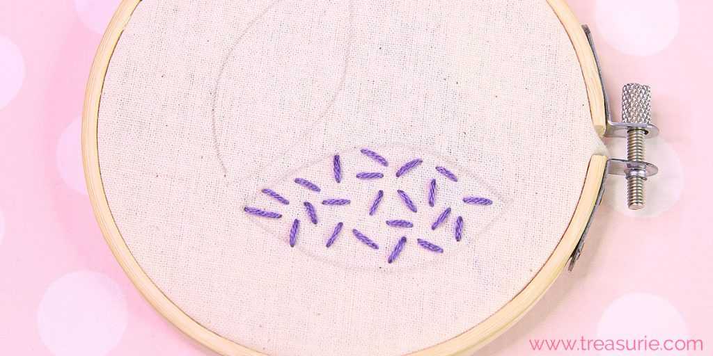 Like many embroidery stitches, it is easiest to sew this stitch using a hoop. These are relatively cheap to purchase and come in bamboo or plastic. You can just use a small one and move it as you embroider the different areas of your item.