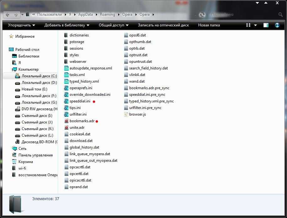 1. Находим файлы закладок и Экспресс-панели Оперы — bookmarks.adr и speeddial.ini