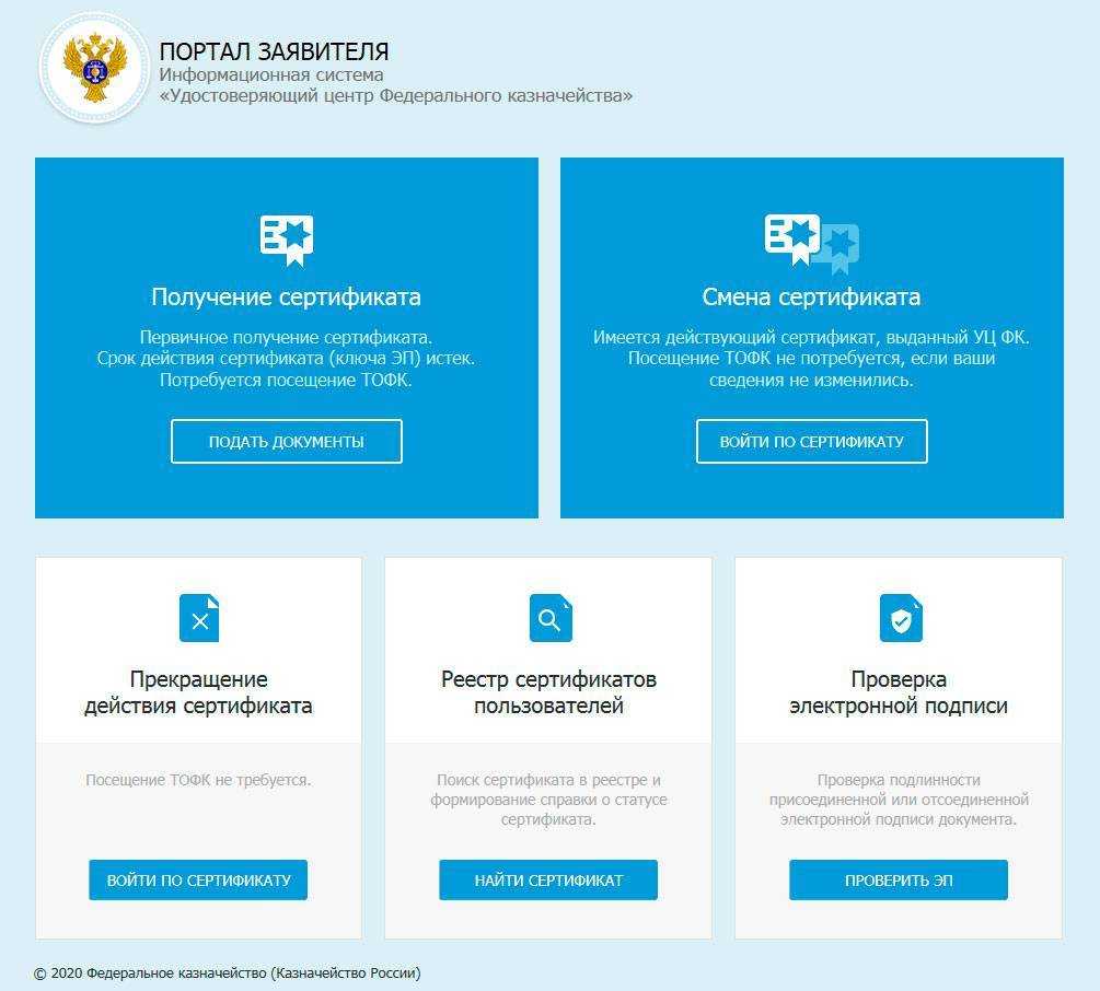 Для начала выполнения действий в системе следует скачать и установить различные сертификаты.