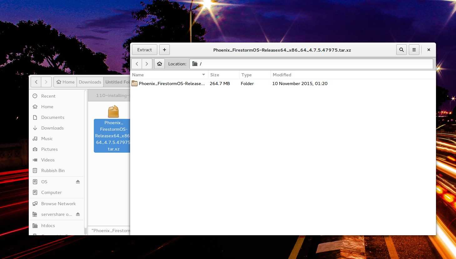 Next you will want to extract the contents of your newly downloaded file. In a distribution such as Ubuntu the easiest and default method will likely be using the program «Archive Manager».