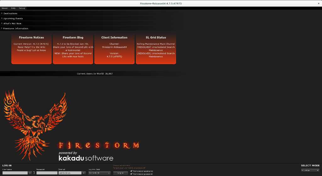 - When you first run Firestorm, you will be prompted to log in using your Second Life account credentials. If you don’t have a Second Life account, you will need to create one before logging in.