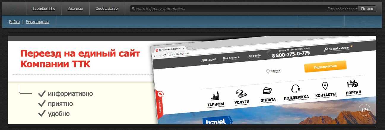 Информируем Вас о том, что Макрорегион «Сибирь» переходит на единый сайт Компании ТТК доступный по адресу myttk.ru. Единый сайт позволит оперативно получать новости компании, актуальную информацию о тарифах и акциях. На едином сайте Вы сможете найти всю необходимую информацию о Компании ТТК, оплатить услуги, оставить заявку на подключение или обратиться в техническую поддержку.