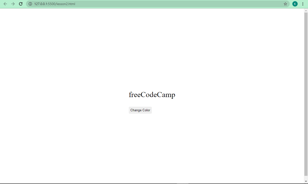 Now, let’s change the freeCodeCampt text to blue by using the click eventListner