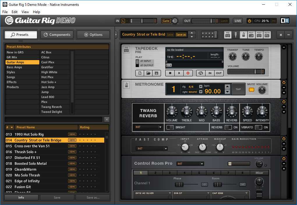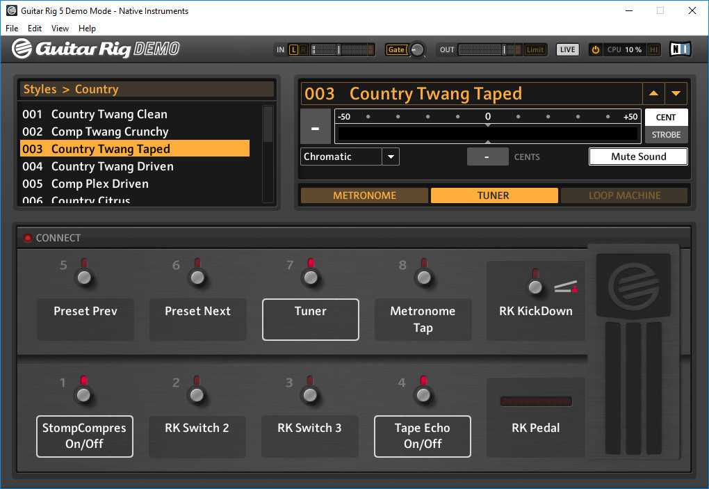 Бесплатная версия Guitar Rig ограничена 14-дневным сроком использования, а также отсутствием возможности сохранения и загрузки данных.
