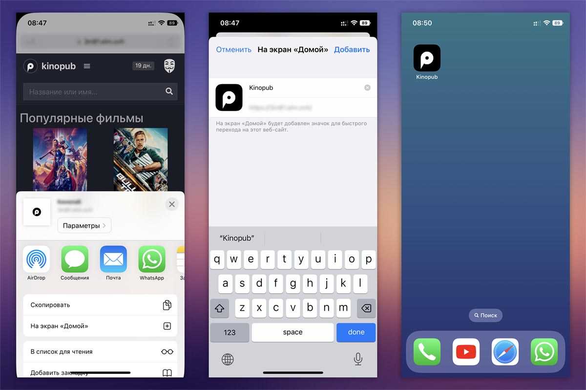 Откройте сайт Kinopub в Safari (через VPN или персональную ссылку на зеркало).