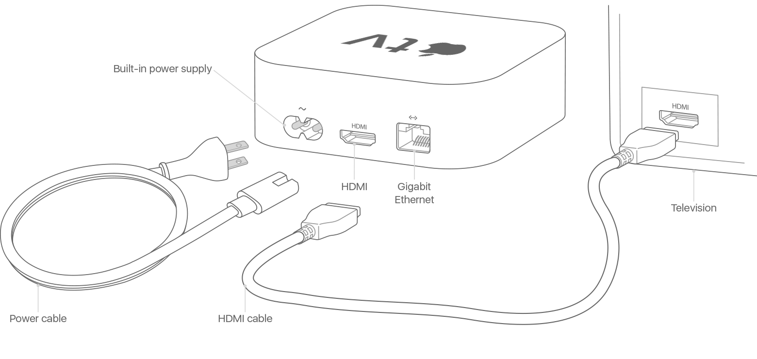 - Кабель HDMI (Apple рекомендует использовать кабель HDMI 2.0 или более поздняя совместимый кабель)