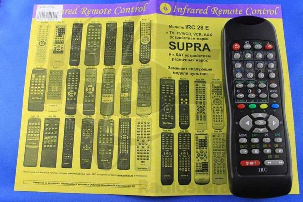 В набор каждого ПДУ врубается собственная аннотация. Подобрав подходящий код телека, его вводят на пульте.