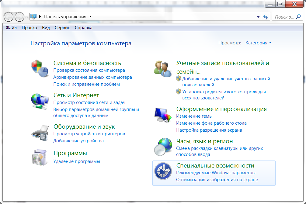 Помимо этого, в «Панели инструментов» имеется еще один пункт, который поможет настроить манипулятор. Для этого необходимо кликнуть по «Специальные возможности», а затем «Изменение параметров мыши».