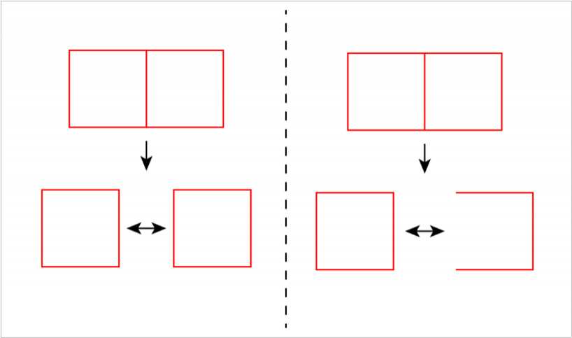 Способ исправить это — удалить одну из удвоенных линий. Нарисуйте один из квадратов с 3 сторонами, но он должен быть напротив квадрата с 4 сторонами.