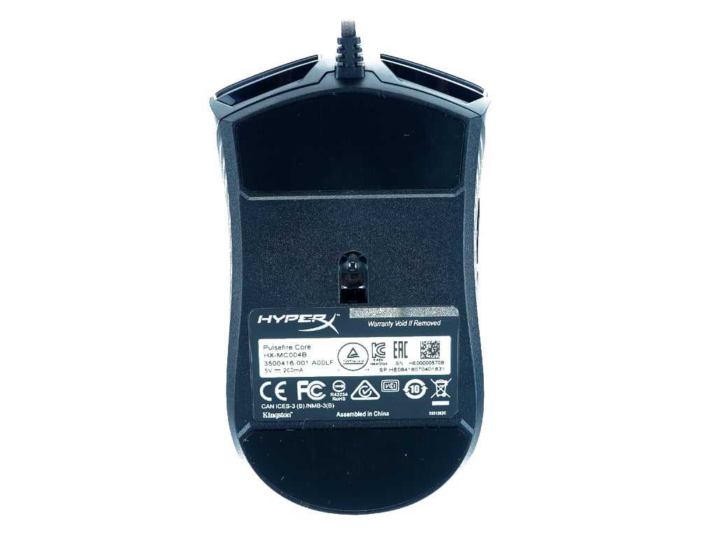 Очень порадовало основание Pulsefire Core. Как всегда, мы имеем две огромные тефлоновые ножки в верхней и нижней части мыши. С такими широкими ножками мышь скользит спокойно и уверено по любой поверхности. В центре «днища» находится оптический сенсор Pixart 3327 с максимальной чувствительностью 6200 DPI. Этот сенсор — не новинкаи уже имеет надежную и наработанную историю использования среди геймеров.