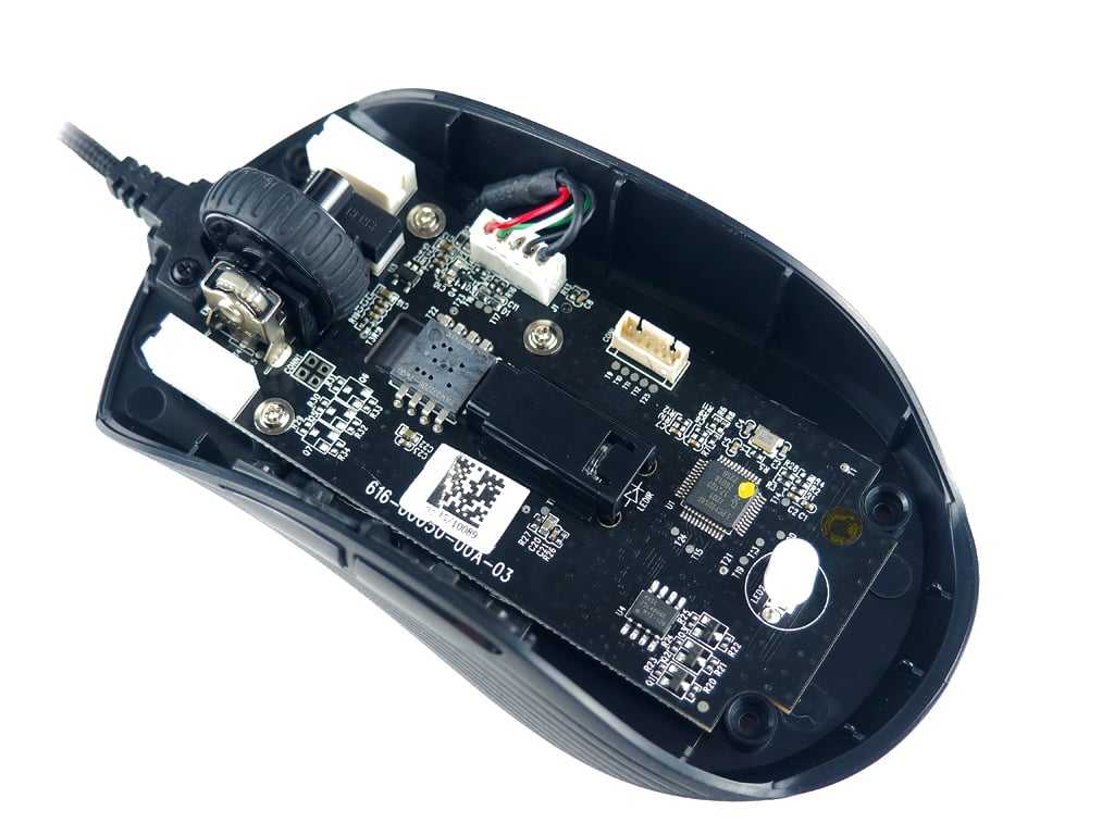 За надежную работу и хранение данных в мышке отвечает 32-битный ARM процессор — Cortex-M0 , расположенный в центральной части платы. Пайка внутренней части выполнена на хорошем уровне, без огрехов.