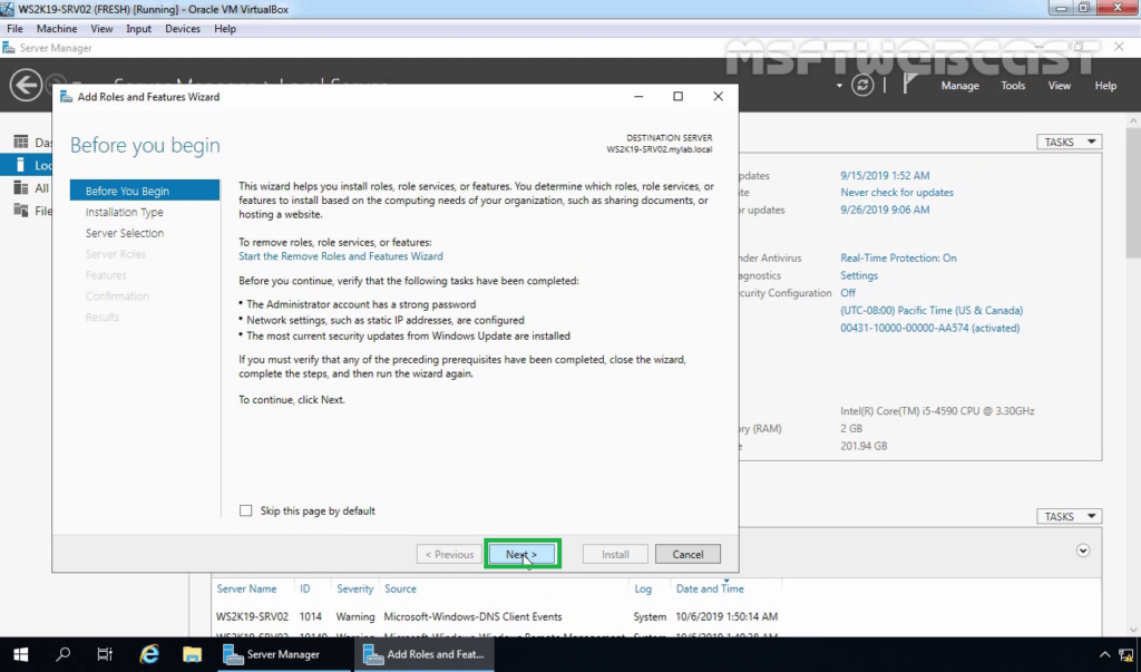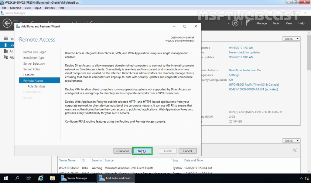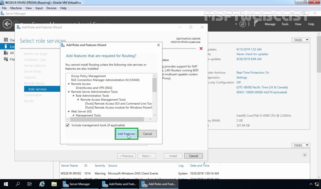 9. Click the Add Features button to add the required feature for LAN Routing. Click Next to continue.