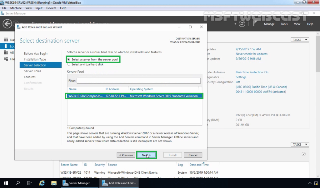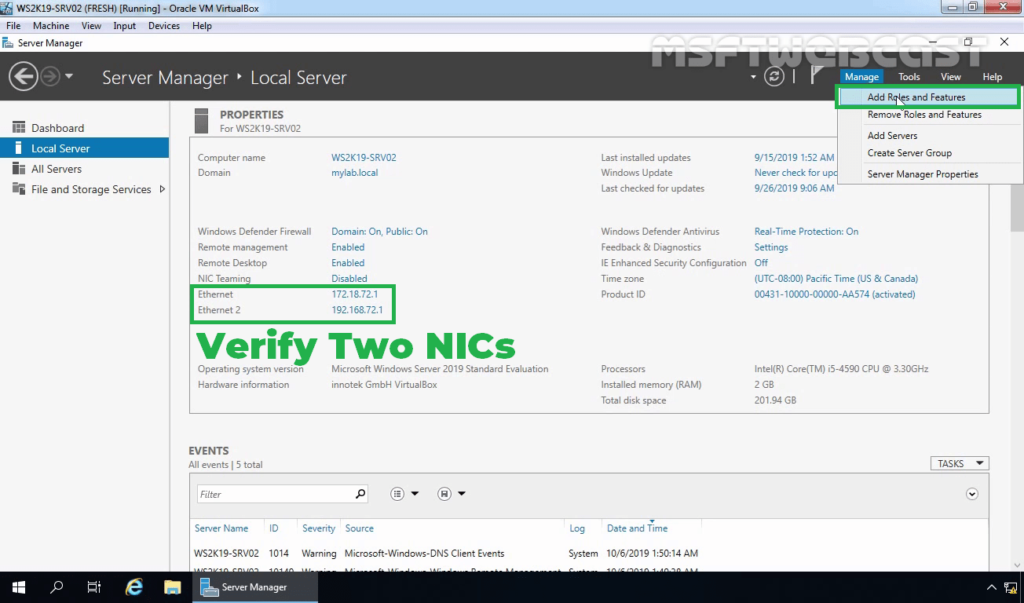 Having said that, from one of the computer clients connected to S01, you should be able to ping S02. This is the IP config I have at one of my servers in S01. You’ll see that the gateway for this subnet is the IP of the router (10.0.0.30).