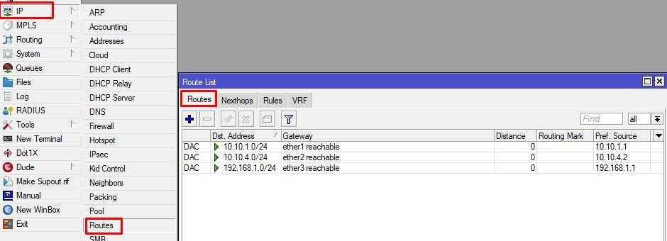 - Надо убедиться, что между двумя маршрутизаторами MikroTik установлено VPN-соединение. Это описано ниже.
