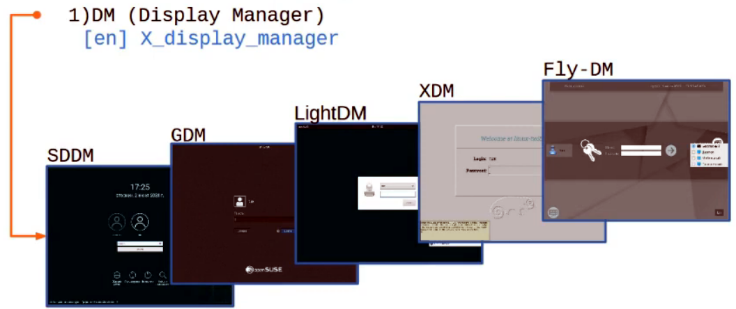 There are several popular display managers for Linux. You’ll notice they’re quite similar in appearance; the main differences are size, complexity, and how they manage users and sessions.
