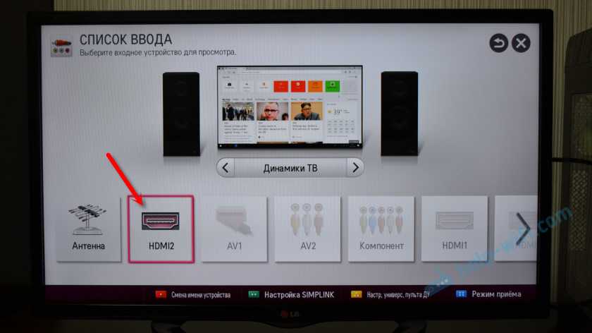 Выбираем HDMI вход как источник сигнала в настройках ТВ