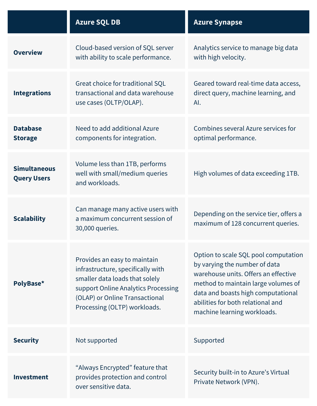 On the other hand, the Azure SQL database (Azure SQL DB) is a fully managed PaaS databased engine that handles most of the database management functions and mostly suitable for OLTP workloads based on Symmetric Multi-Processing (SMP) system. Azure SQL DB offer deployment options as a single database, elastic pool, and as a Managed Instance. This article covers a single database as the Azure SQL DB deployment option for comparison with Azure Synapse.