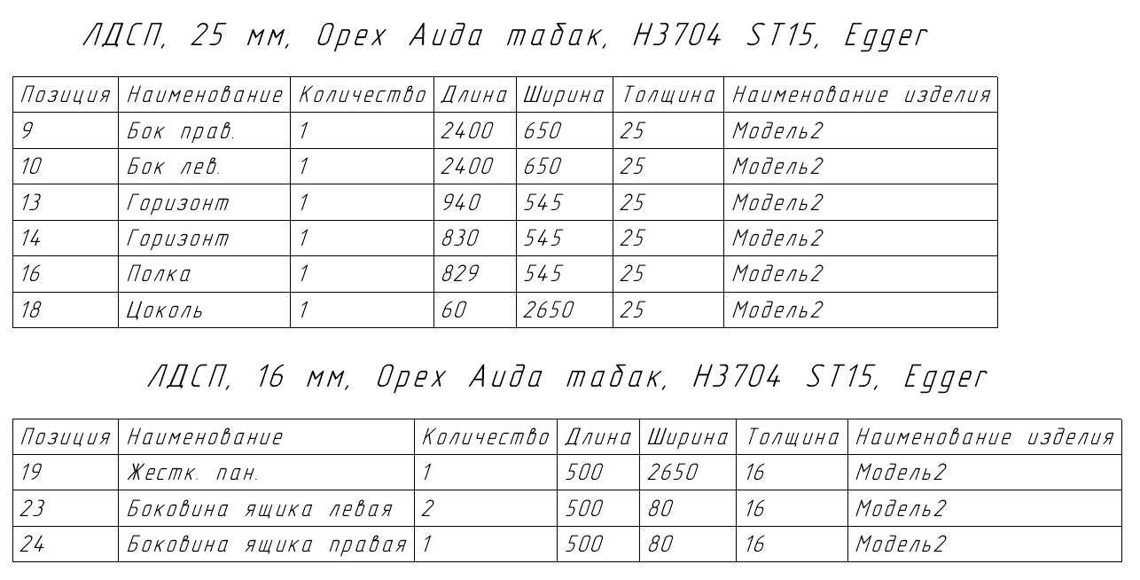 - автоматизированное составление спецификаций с размерами деталей (габаритными и пильными);