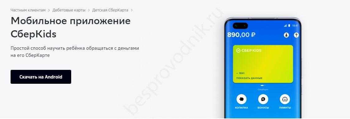 После активации кредитки, Вам нужно будет установить приложение SberKids на мобильный телефон ребенка. Правда, после ввода санкций программа недоступна для скачивания в официальных магазинах Play Market и AppStore. Скачать приложение всё еще можно на сайте банка или в AppGallery (на Huawei), но пользоваться кредиткой ребенок сможет и без софта.