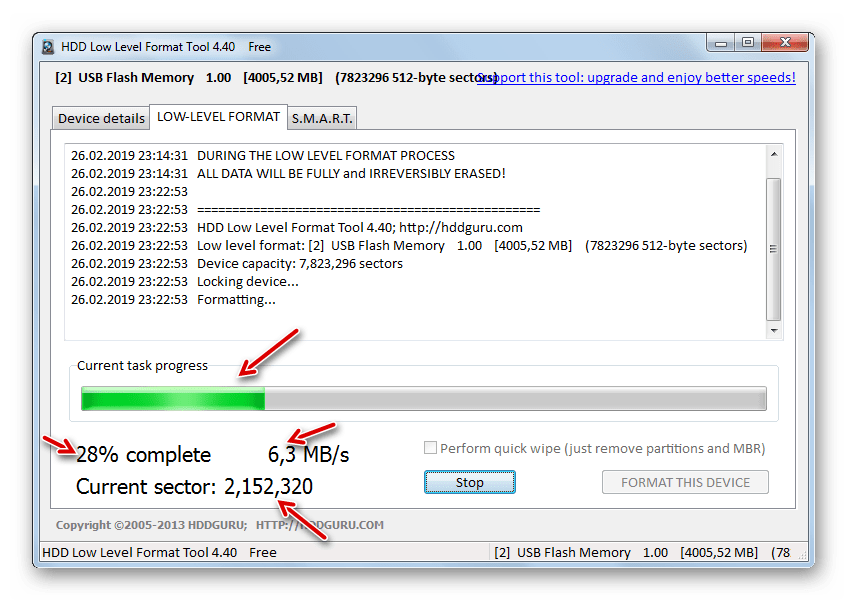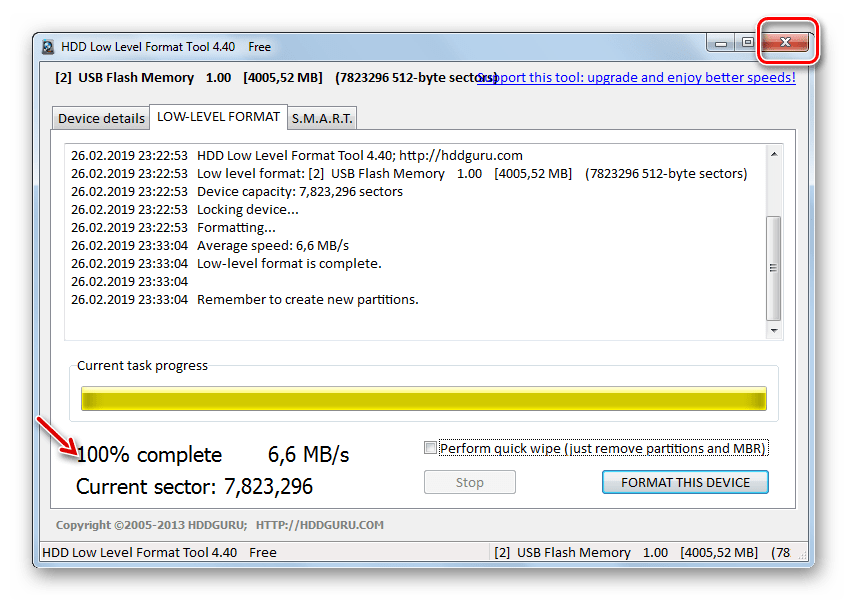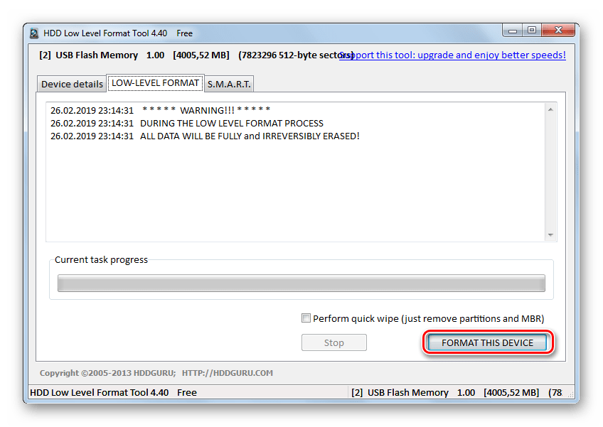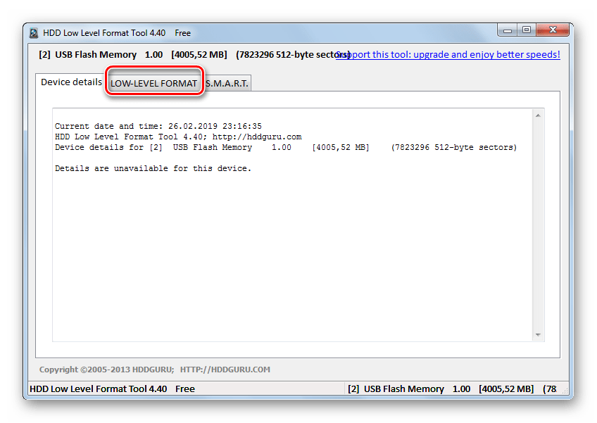 Способ 1: Низкоуровневое форматирование