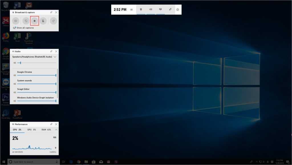 Как : Нажмите Windows logo key + г , затем нажмите кнопку записи, чтобы записать игры на всплывающей панели инструментов.