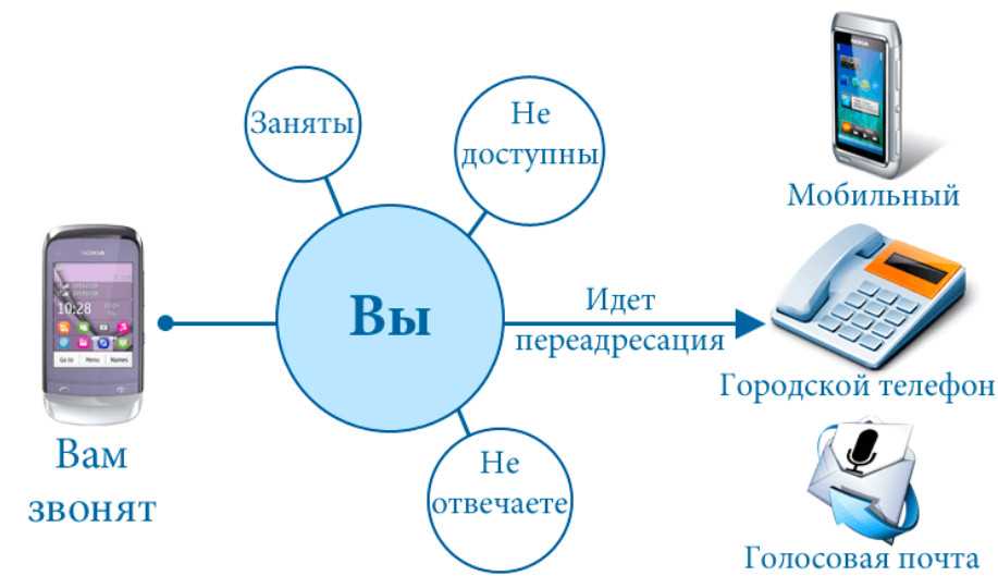 - безусловная — при которой на указанный номер абонента переводятся абсолютно все поступающие звонки;