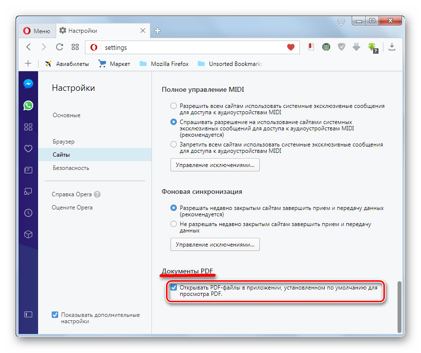 Для активации функции плагина «Chrome PDF» нужно просто убрать указанную выше галочку. Теперь документы PDF, расположенные в интернете, будут открываться через интерфейс Оперы.