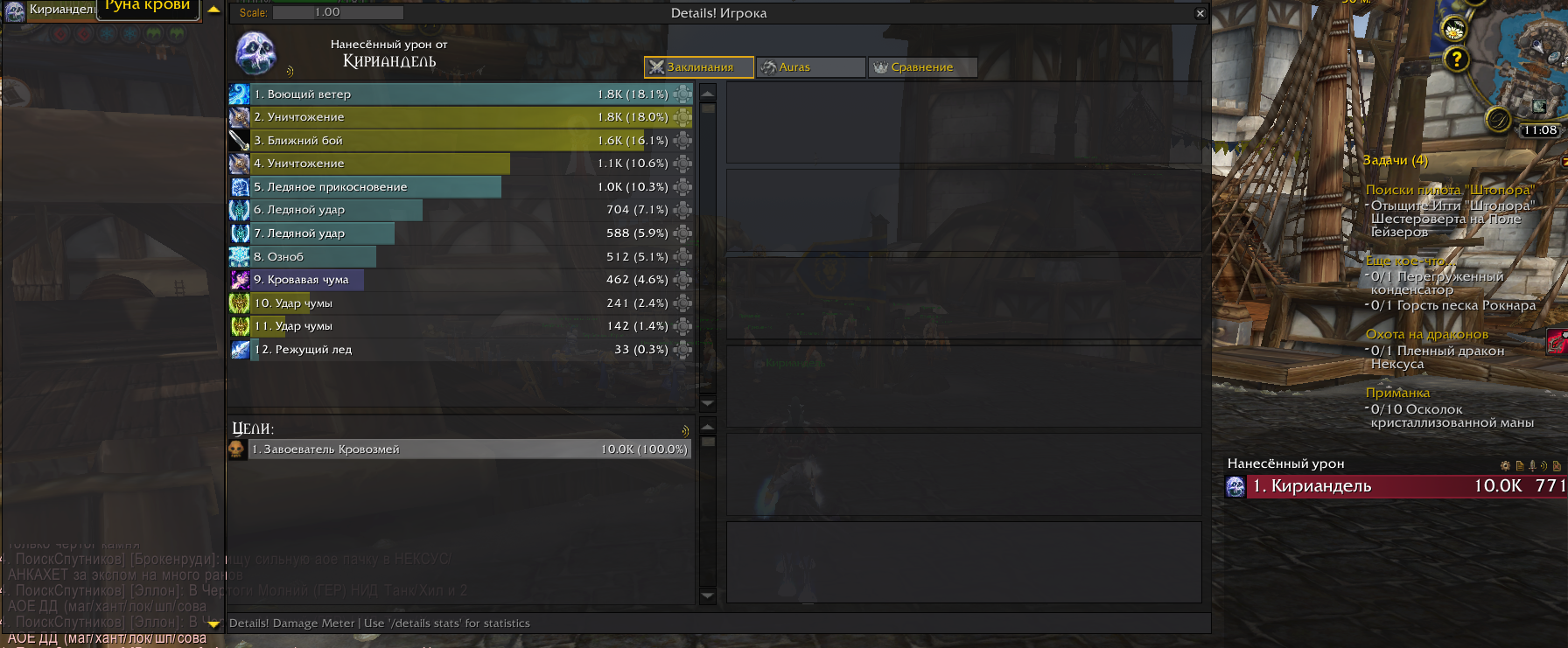 Приятное дополнение, которое позволяет увидеть ДПС, ХПС и прочие аспекты боя. Не повлияет на вашу скорость прокачки, но иногда взглянуть на урон бывает интересно. Чуть более востребован на хай-лвлах, когда можно разобраться в ротации других персонажей в группе или изучить противников на арене.