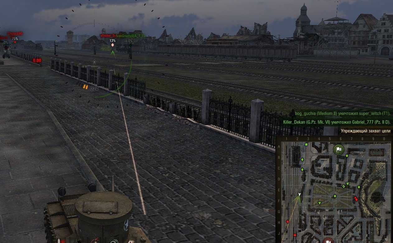 Стрельба по движущемуся танку представляет определенную сложность. Чтобы попасть по такой мишени, нужно учесть скорость ее движения, направление, расстояние до нее и скорость полета снаряда вашего орудия. С ростом количества боев, у большинства игроков развивается умение делать правильное упреждение и дополнительная помощь, обычно, не нужна. Если же по какой-то причине вам проще доверить эту задачу «электронике» — механика игры позволяет использовать чит на автоматическое упреждение стрельбы.