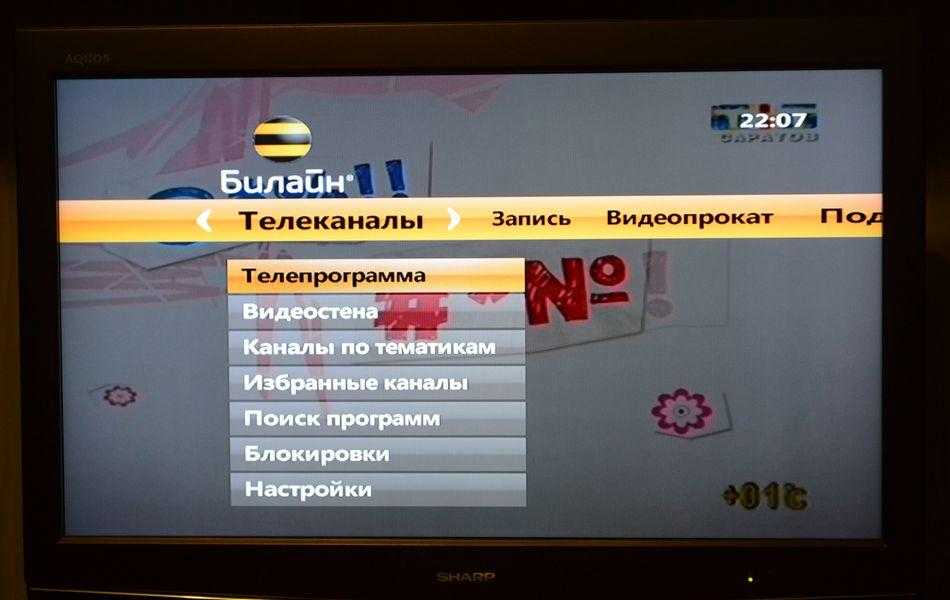 3. После загрузки на экране телевизора появится основное меню приставки Билайн.