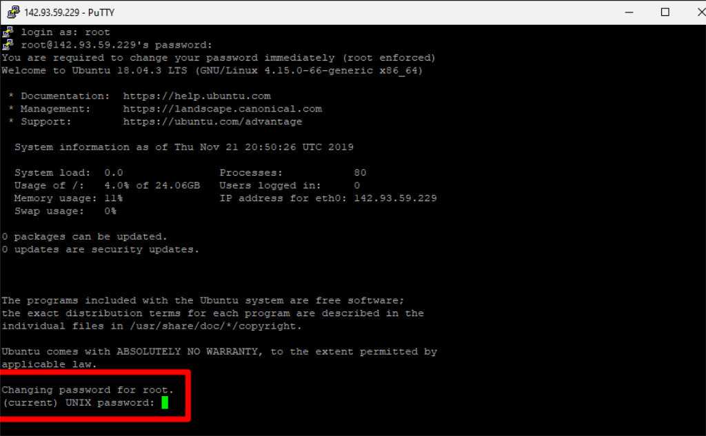Система предложит изменить созданный автоматически пароль на новый. Нужно еще раз ввести сначала старый, а потом новый дважды. После каждого ввода используем клавишу Enter.