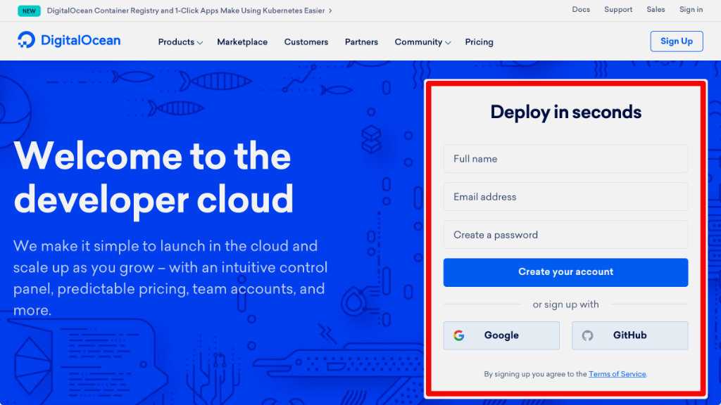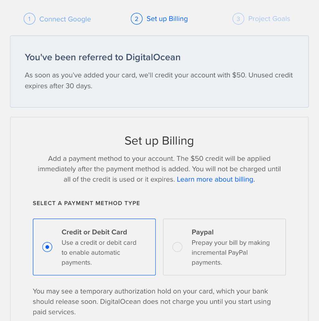 Шаг 1. Создаем аккаунт в DigitalOcean. Это реферальная ссылка автора, которая даст ему возможность дольше пользоваться VPN бесплатно, а вам — 50 баксов на счет.