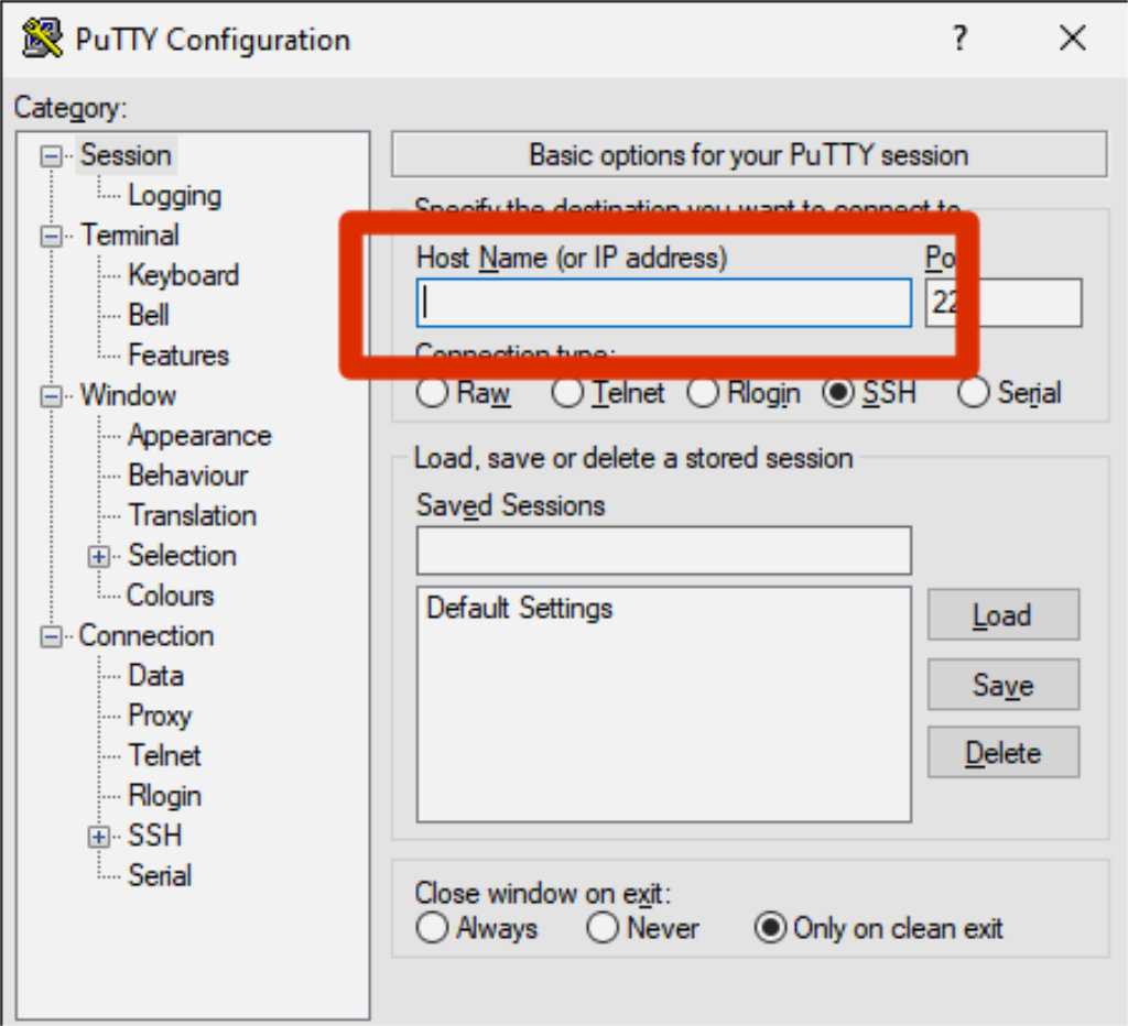 Устанавливаем и открываем. Вводим IP-адрес сервера, который получили на почту, в поле Host Name. Нажимаем кнопку Open.