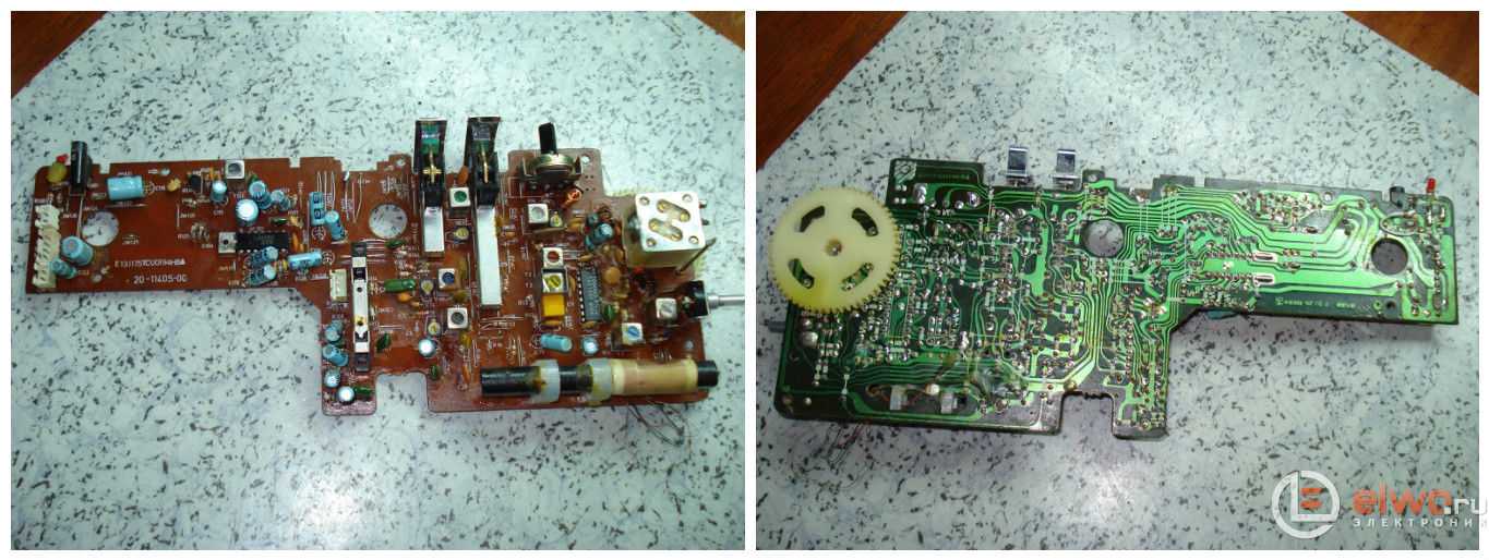 А вот печатную плату понять немного хотелось. Для разминки проверил все электролитические конденсаторы на фактическое наличие ёмкости и ESR. Поверить трудно, но все оказались в полном порядке. Выпаял и разобрал регулятор громкости — переменный резистор, на пример ревизии. Как-то ещё давно он малость забарахлил и был, посредством медшприца с иглой, удостоен порции машинного масла. Не нуждается ли в добавке? А масло в нём оказалось столько, что хоть сейчас на сковородку — промокнул излишки, вернул на место. Плату со стороны печатных проводников отмыл специально купленным в аптеке муравьиным спиртом (ничего другого не дали), а затем, чтобы не осталось белого налёта от него, горячей водой с шампунем. Получилось не плохо, хотя и воспринимается на слух, сей способ диковато.