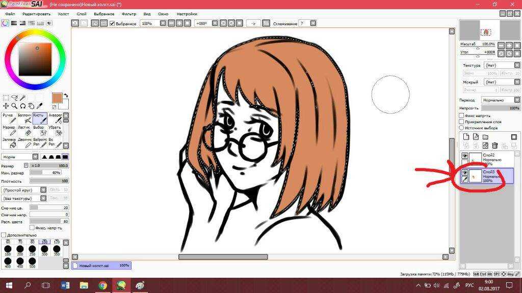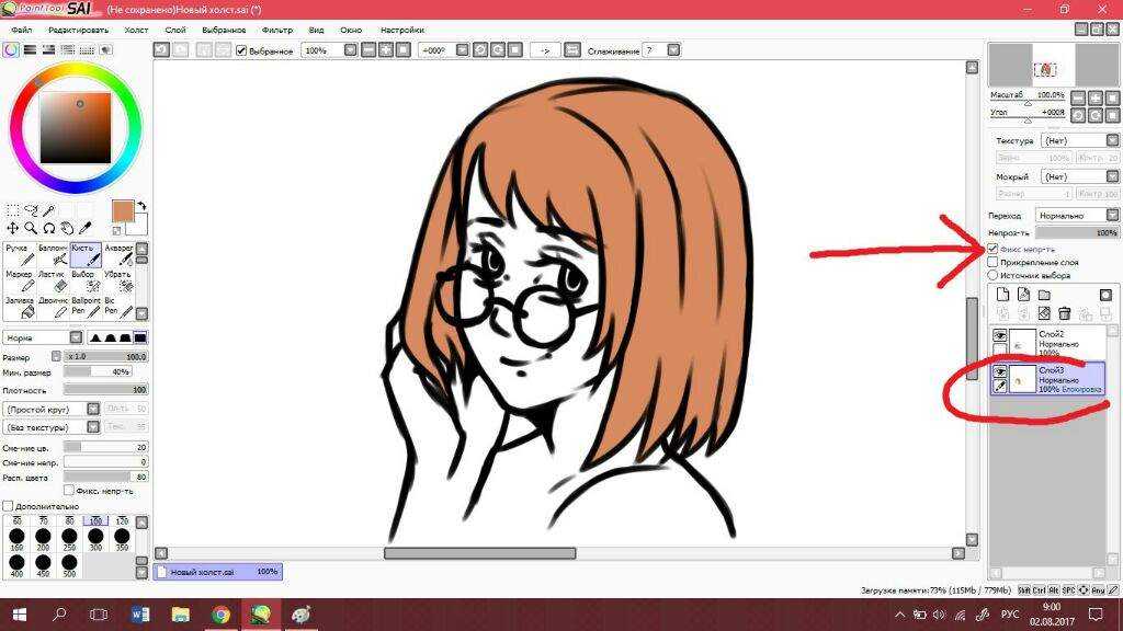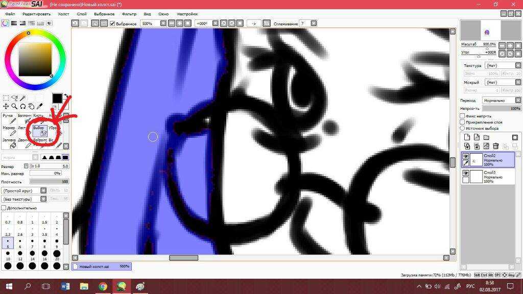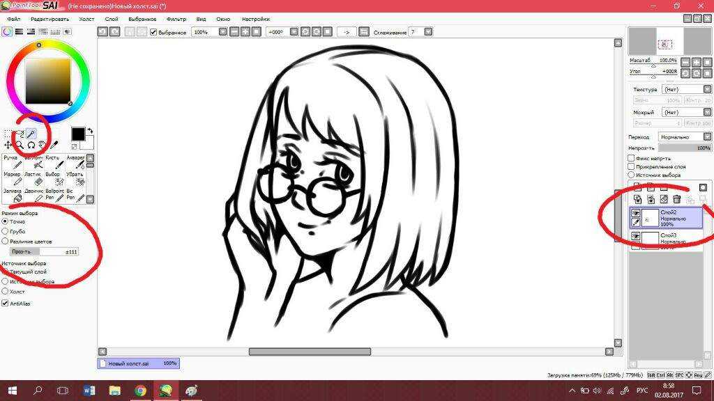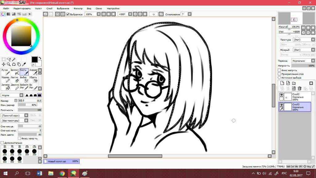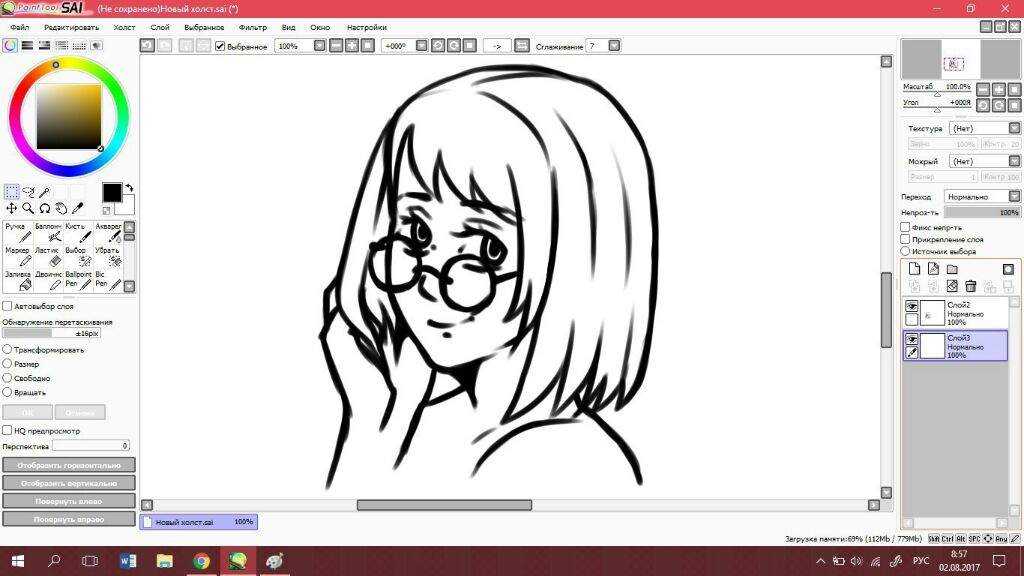 Шаг 1: Перед началом работы с изображением в программе Sai, рекомендуется правильно настроить холст