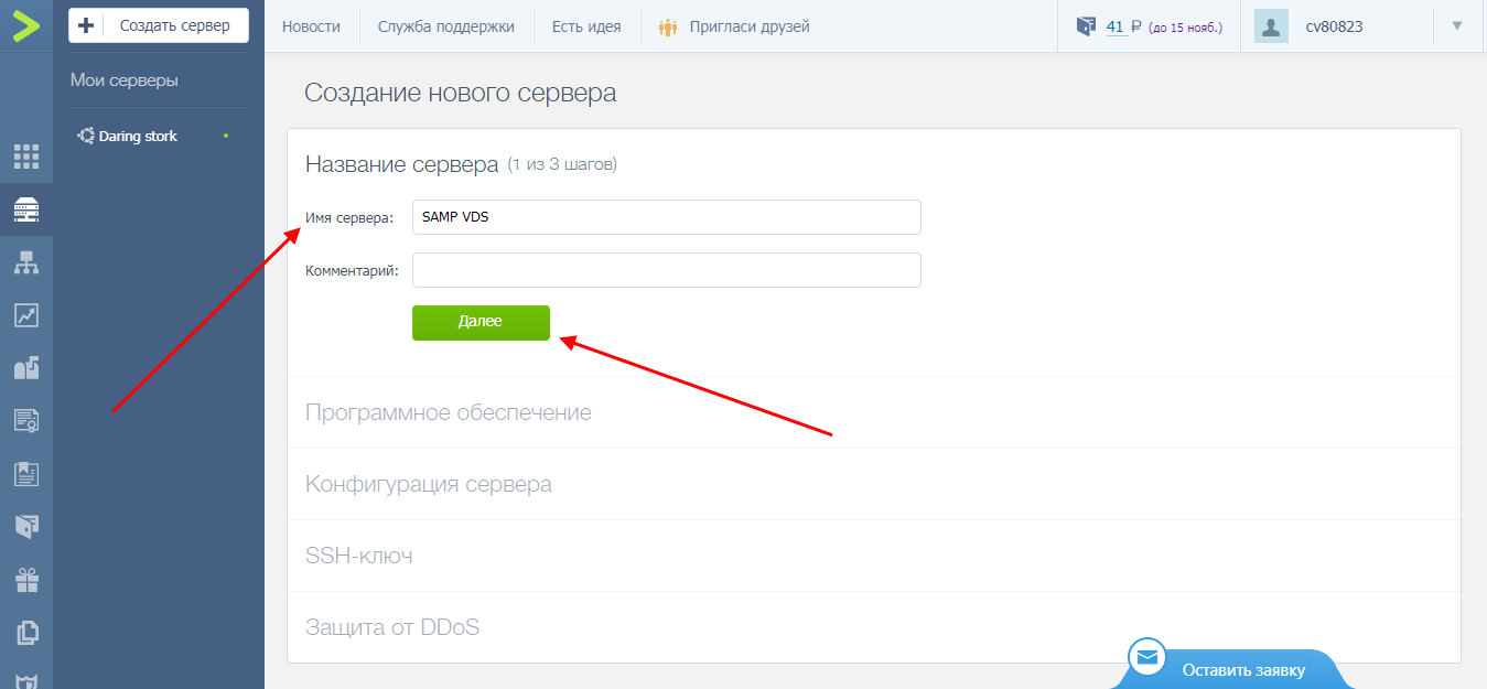 Придумываем для него название, например, SAMP VDS. По желанию добавляем комментарий и жмем «Далее».