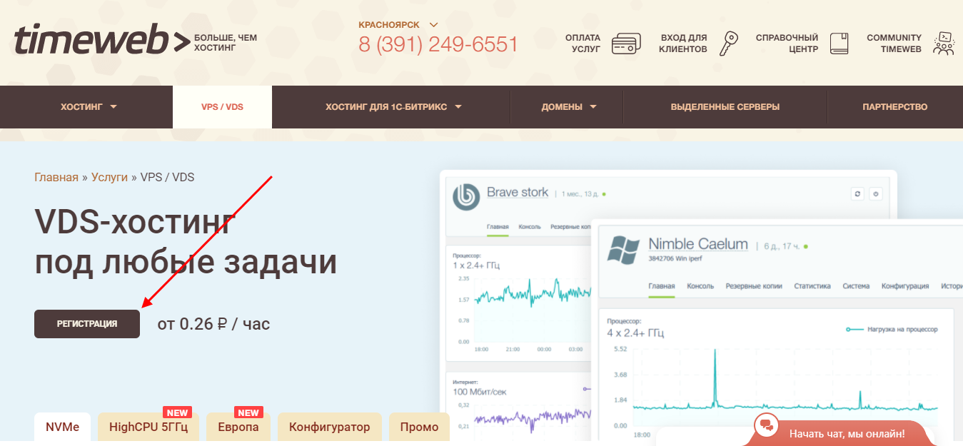 Для создания ВДС-сервера воспользуемся популярным хостингом Timeweb, подходящим как для малых, так и крупных проектов.