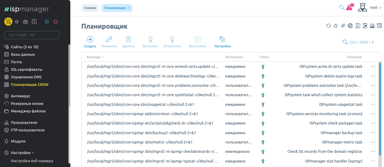 Cron записывает расписание запуска программ в конфигурационный файл. Посмотреть и отредактировать его можно из командной строки с помощью текстового редактора: