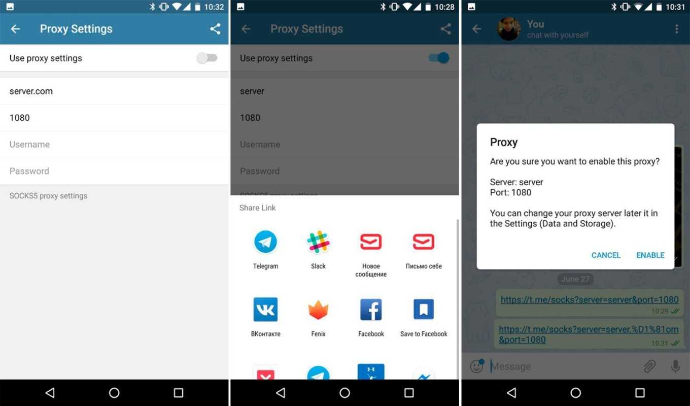 Отдельного внимания заслуживает настройка прокси для Telegram на Android. Здесь алгоритм такой: