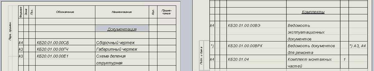 - конструкторская спецификация (форма 1 и 1а ГОСТ 2.106-96);