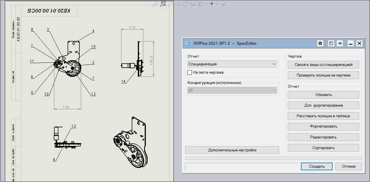 Основные функции SWPlus, как и любого другого приложения по созданию спецификации — это вывести состав изделия, разбитый на графы и разделы, на бланке по ГОСТ и проставить соответствующие позиции на сборочном чертеже (рис. 2 и рис. 3).