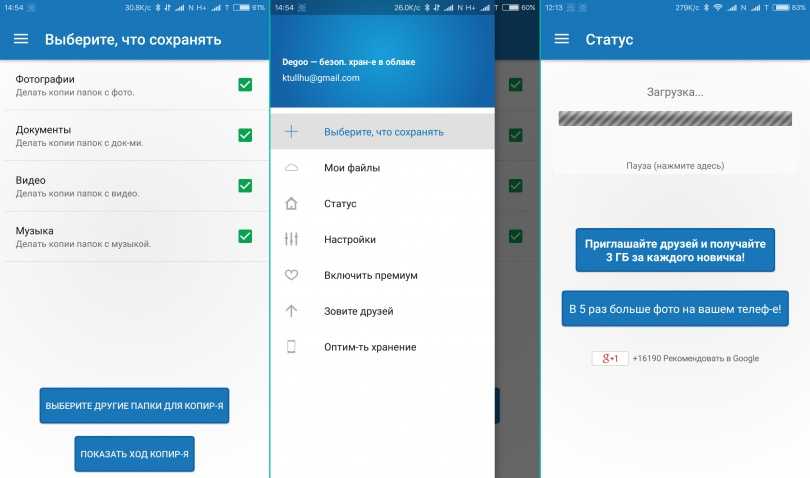 Скриншоты мобильного приложения Degoo